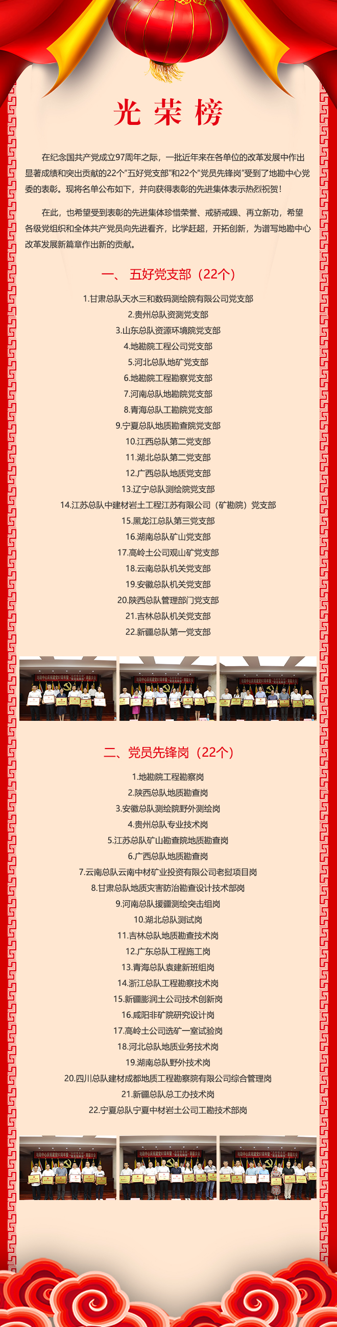 ——地勘中心2018?年“五好党支部”“党员先锋岗”获得者