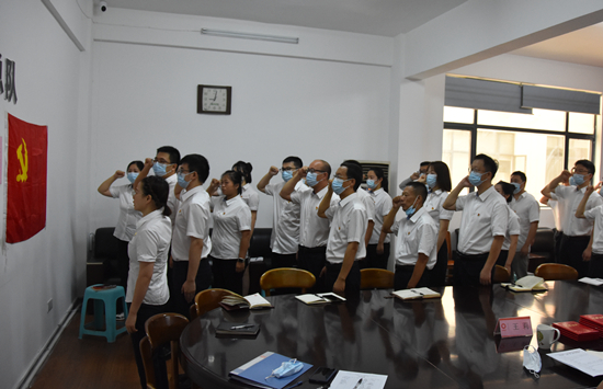 全体党员和新党员一起在领誓人的带领下,重温入党誓词,用铮铮誓言表达对党和人民的无限忠诚,宣示坚定不移走前列的信心和决心。