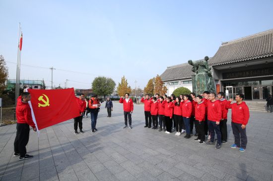 在焦庄户地道战遗址纪念馆前,全体党员面对党旗,重温入党誓词,回顾入党时的庄严承诺,进一步增强了党的意识、党员意识。