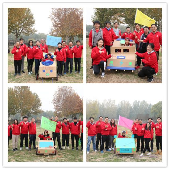 组建团队后,开展了“造车新势”拓展项目。各团队成员在参加各种挑战项目后,获取相应筹码奖励,赚到团队金币,然后到指定地点购买制造“汽车”所需的材料、安装工具及美化道具。拿到这些简单的物品道具,一开始大家都觉得无从下手。通过从辨别零件、底盘制作、轮轴安装入手,集思广益、各司其职,经过一个半小时的努力,各组在规定的时间内分别组装出了代表着不同理念的汽车,并且由一位组员驾驶,完成了赛车任务。最终根据赛车设计、车模展示、速度比拼、新闻发布会等环节,由各车队相互打分,综合评比,排出名次。