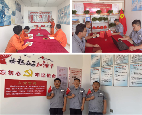 为庆祝中国共产党成立101周年,喜迎党的二十大胜利召开,深入学习贯彻自治区第十三次党代会精神,大力传承和弘扬“忠诚、干净、担当、科学、求实、创新”的新时代地勘精神,2022年7月1日,宁夏总队承担并实施的宁夏自然资源厅地方急需矿产资源勘查项目(一标段)-宁夏盐池县青山石记场北石膏矿勘探和宁夏自然资源厅地方急需矿产资源勘查项目(三标段)-宁夏盐池县大水坑镇红井子砖瓦用粘土矿详查、宁夏盐池县惠安堡镇烟墩山建筑用砂一矿详查项目部临时党小组精心谋划,积极开展“热烈庆祝中国共产党成立101周年”主题党日活动。
