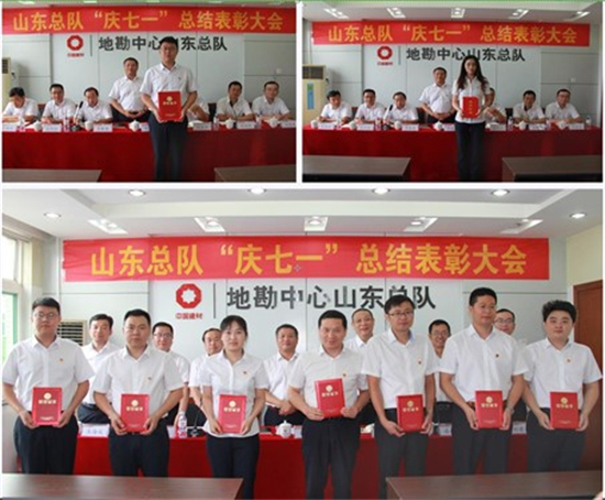 副总队长、总工程师高树学宣读山东总队“两优一先”表彰决定。经各党支部推荐和民主测评,总队党委决定授予勘测院党支部“先进党支部”荣誉称号,授予罗静同志“优秀党务工作者”荣誉称号,授予刘海泉、王海成、王国金、李振等九位同志“优秀共产党员”荣誉称号。