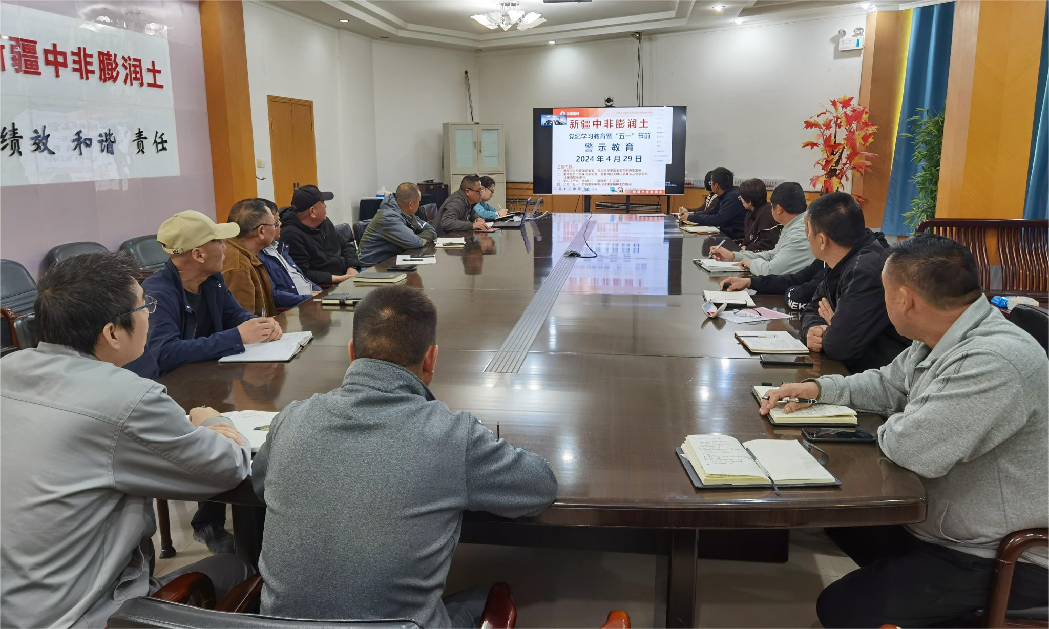 为进一步推进党纪学习教育工作,4月29日上午,新疆膨润土公司召开党纪学习教育暨“五一”节前警示教育,党委书记、总经理樊文军主持会议,公司中层及以上党员领导干部、各支部书记参加学习教育活动。