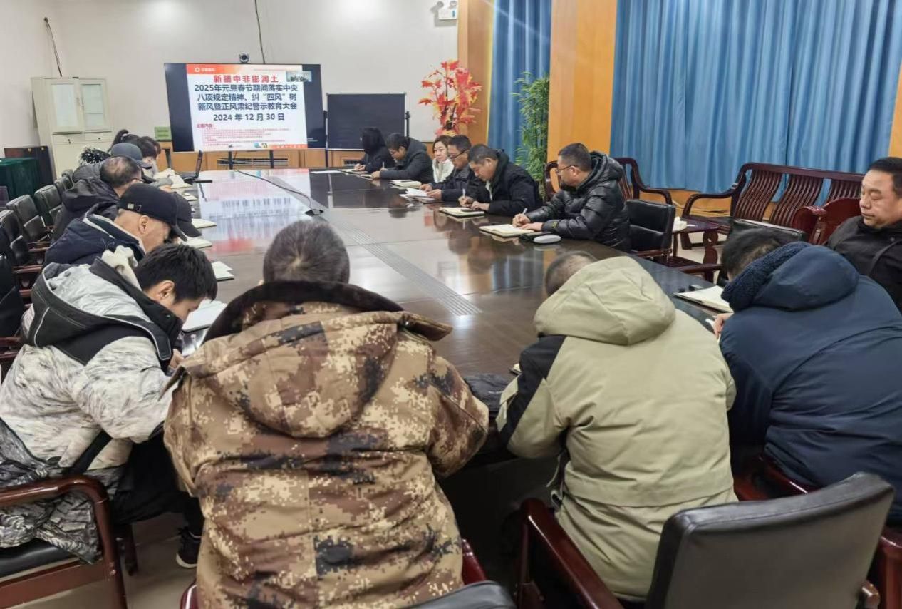 在即将迎来2025年元旦春节的关键节点,新疆膨润土公司党委2024年12月30日召开了“2025年元旦春节期间正风肃纪警示教育大会”,进一步严明纪律,营造风清正气的节日氛围,党员和干部26人参加。