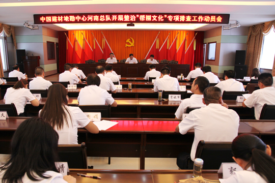 会上传达了信阳市纪委《全市开展违反中央八项规定精神问题专项整治工作方案》;宣读了《中国建材地勘中心河南总队严明政治纪律和政治规矩开展整治“帮圈文化”专项排查工作实施方案》;与会人员签订了《坚决抵制“帮圈文化”承诺书》。