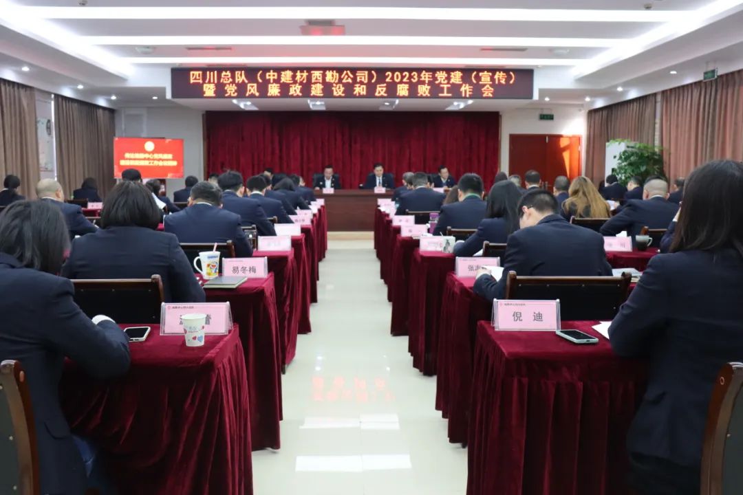 3月21日,四川总队(中建材西勘公司)2023年党建(宣传)暨党风廉政建设和反腐败工作会议在成都召开。会议全面贯彻习近平新时代中国特色社会主义思想和党的二十大精神,深入学习二十届中央纪委一次、二次全会精神,传达地勘中心党风廉政建设和反腐败工作会议精神,总结2022年工作,部署2023年重点工作任务。总队(公司)党委书记孙铁钢作了题为《以党的二十大精神为指引突出深度融合厚植政治优势以高质量党建引领总队(公司)高质量发展》的党建工作报告。总队(公司)纪委书记王勐作了题为《勇担使命展作为正风肃纪再扬帆行而不辍履践致远为总队(公司)高质量发展提供坚强政治保障》的党风廉政建设和反腐败工作报告。总队(公司)党委副书记周庭主持会议。