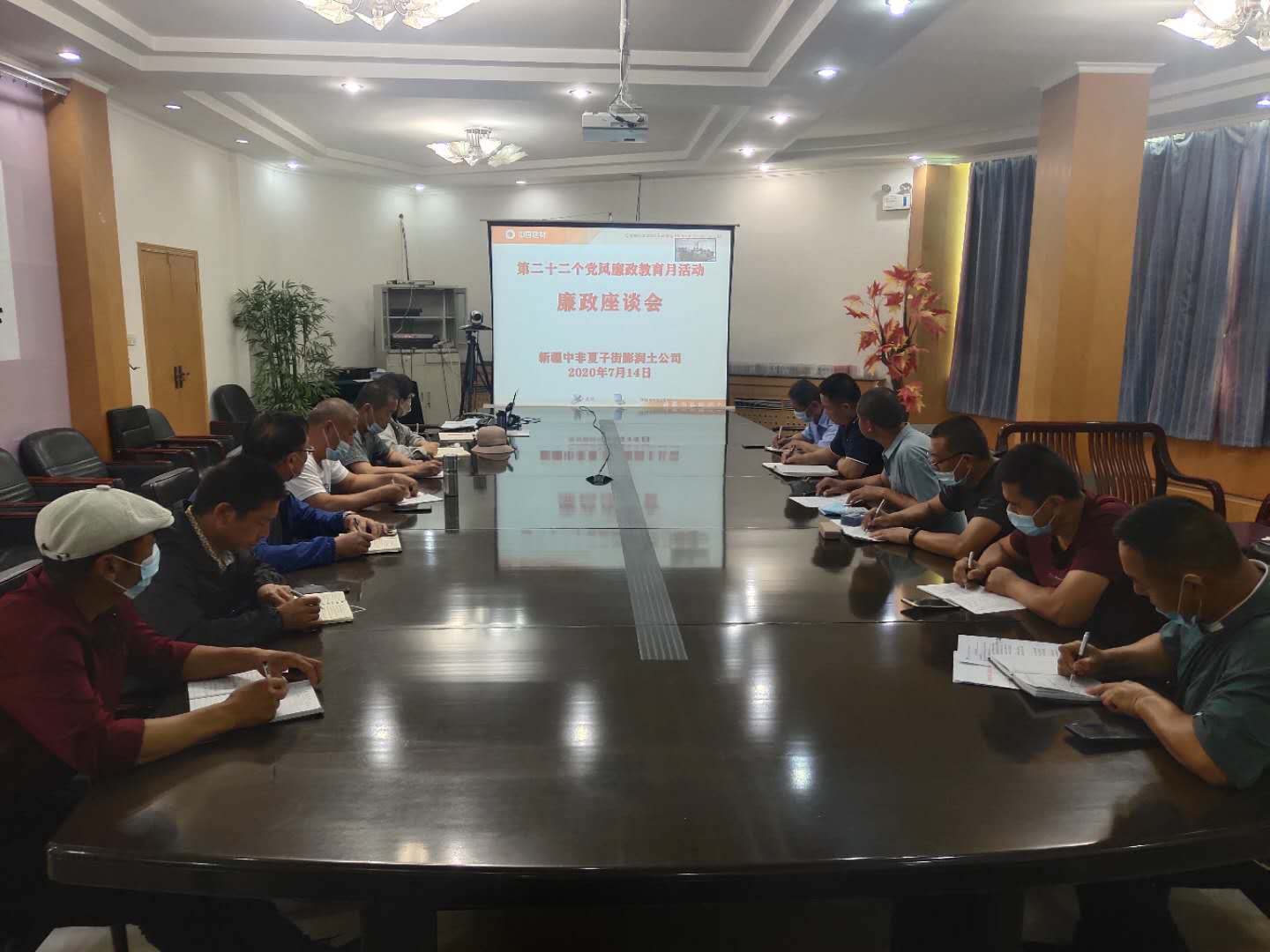 7月14日,新疆公司组织公司领导班子、中层以上管理人员及相关工作人员共26人参加了中国建材集团警示教育视频电话会。会议结束后,公司结合第二十二个党风廉政教育月活动及时召开了管理人员廉政座谈会,党委书记带头,领导班子成员和各支部书记分别结合自身实际谈了感想和体会。最后,公司党委书记、总经理李世新代表公司党委提出四点要求。