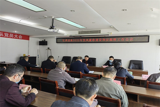 为深入贯彻十九届中央纪委六次全会精神,落实集团和地勘中心党委2022年党风廉政建设和反腐败工作部署,3月11日上午,江西总队召开 2022年党风廉政建设和反腐败工作暨警示教育会议,总结2021年党风廉政建设和反腐败工作,部署2022年重点工作任务。会议由党委书记、总队长黄德保主持。总队中层以上干部、支部委员及党群工作部有关人员参加了会议。
