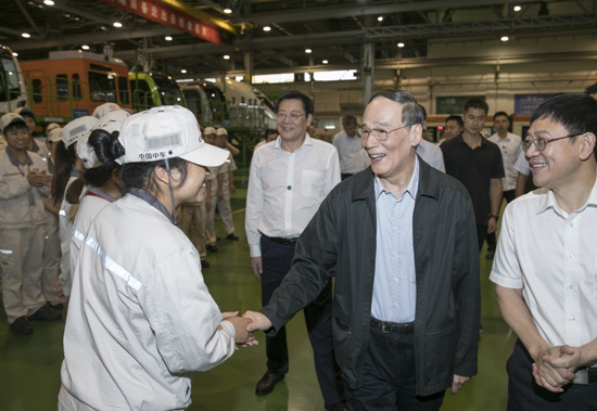 9月3日至5日,中共中央政治局常委、中央纪委书记、中央巡视工作领导小组组长王岐山在湖南省调研并主持召开巡察工作座谈会。这是9月4日,王岐山到中国中车株洲电力机车有限公司考察。(新华社记者 王晔 摄)