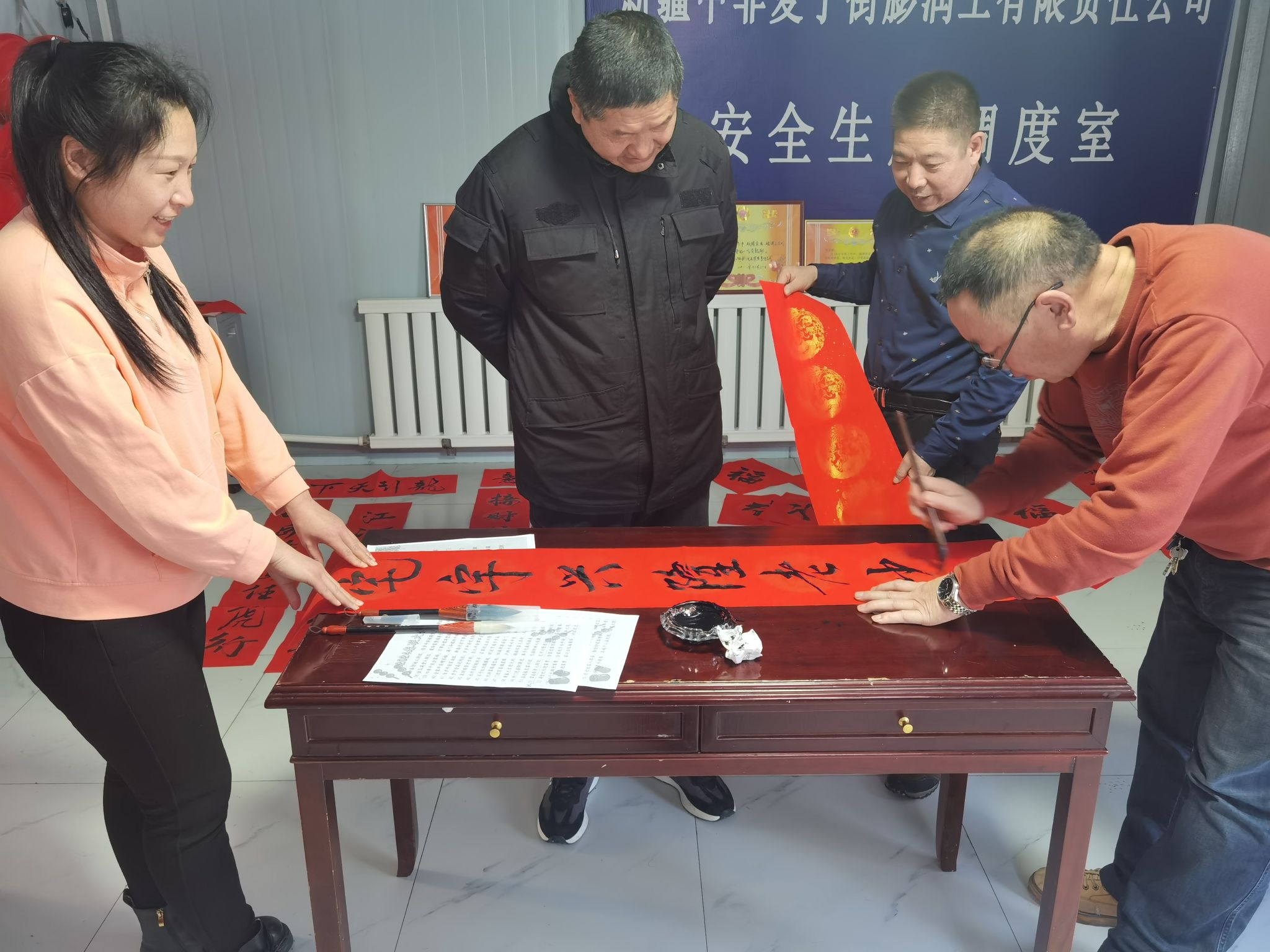 根据总工会下发的《关于在元旦春节期间开展“送万福、进万家”活动的通知》的文件精神,为贯彻落实党的二十大和第三次中央新疆工作座谈会精神,贯彻落实中国工会十八大精神,持续推进“文化润疆”工程,弘扬中华优秀传统文化,丰富职工群众精神文化生活,1月24日,新疆膨润土公司工会组织开展“送万福 进万家”送温暖活动,工会主席刘洪与工会委员一行为职工群众赠送现场书写的春联、福字,为即将来临的新春佳节增添了浓厚的节日氛围,把工会“娘家人”的美好祝福送进千家万户。