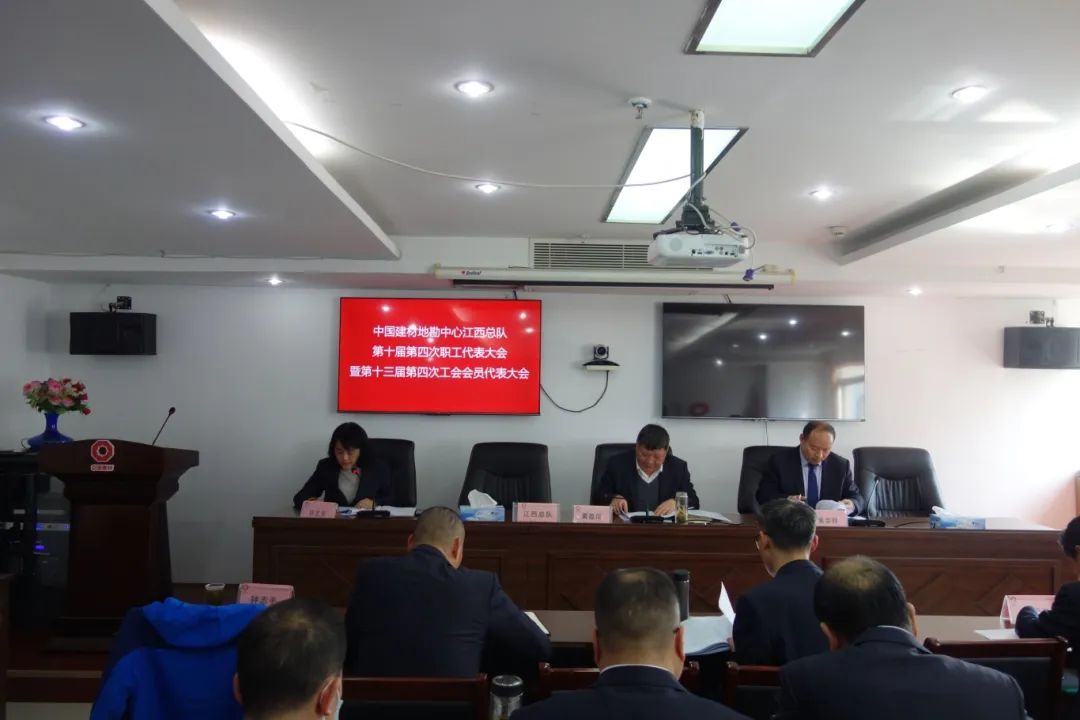 2024年3月12日,江西总队召开十届四次职工代表大会暨十三届四次会员代表大会。地勘中心党委组织部部长邵青、高级经理王志兵通过视频连线出席会议,总队党政班子全体成员等职工代表和列席人员共39人参加会议。会议由党委书记、总队长黄德保,党委副书记、纪委书记王忠平,工会主席许艺芳分别主持。