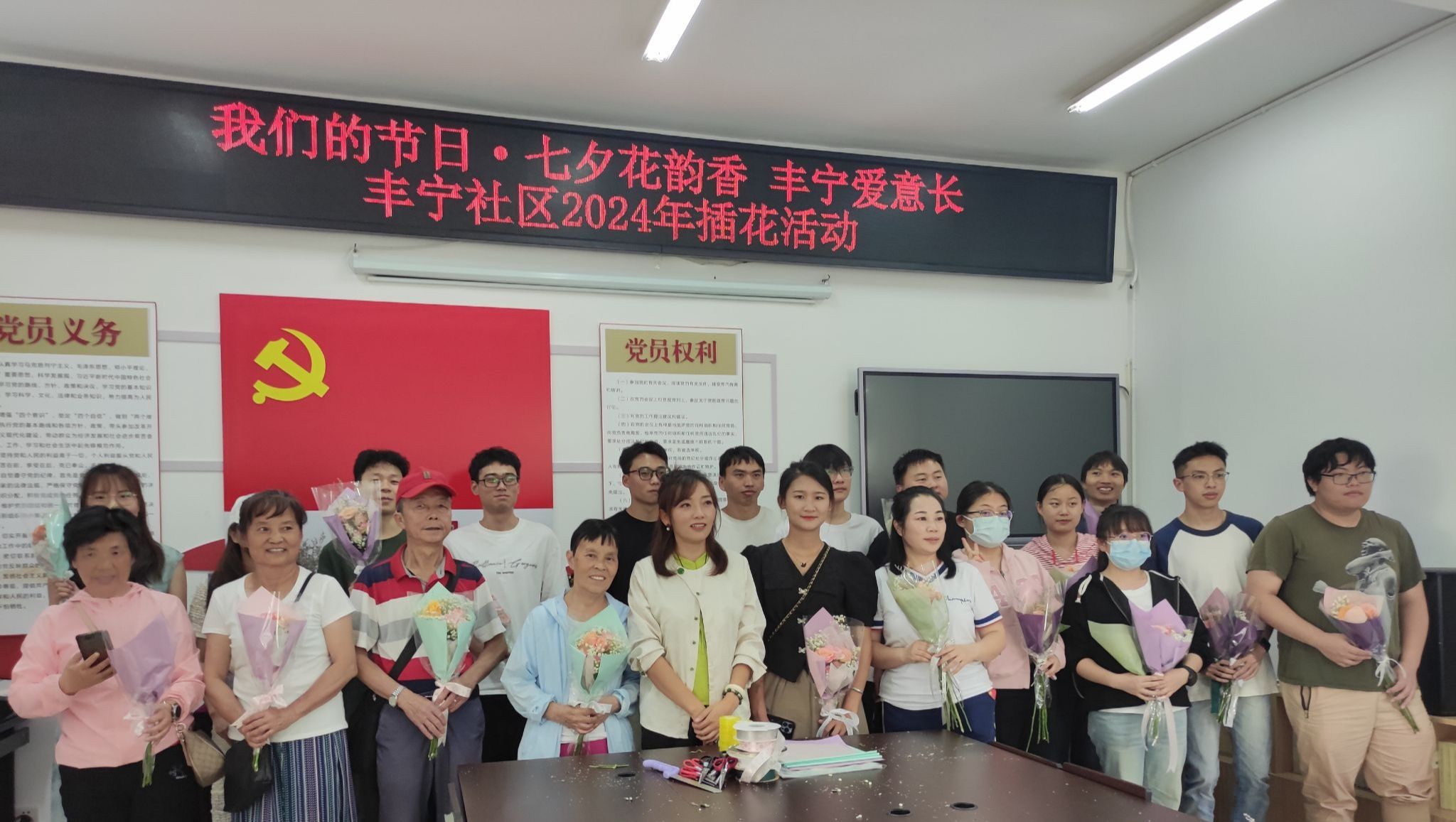 最后,大家手捧花束,用合影记录这一美好瞬间。细腻的花香在空气中弥漫,情感也在活动中延续。