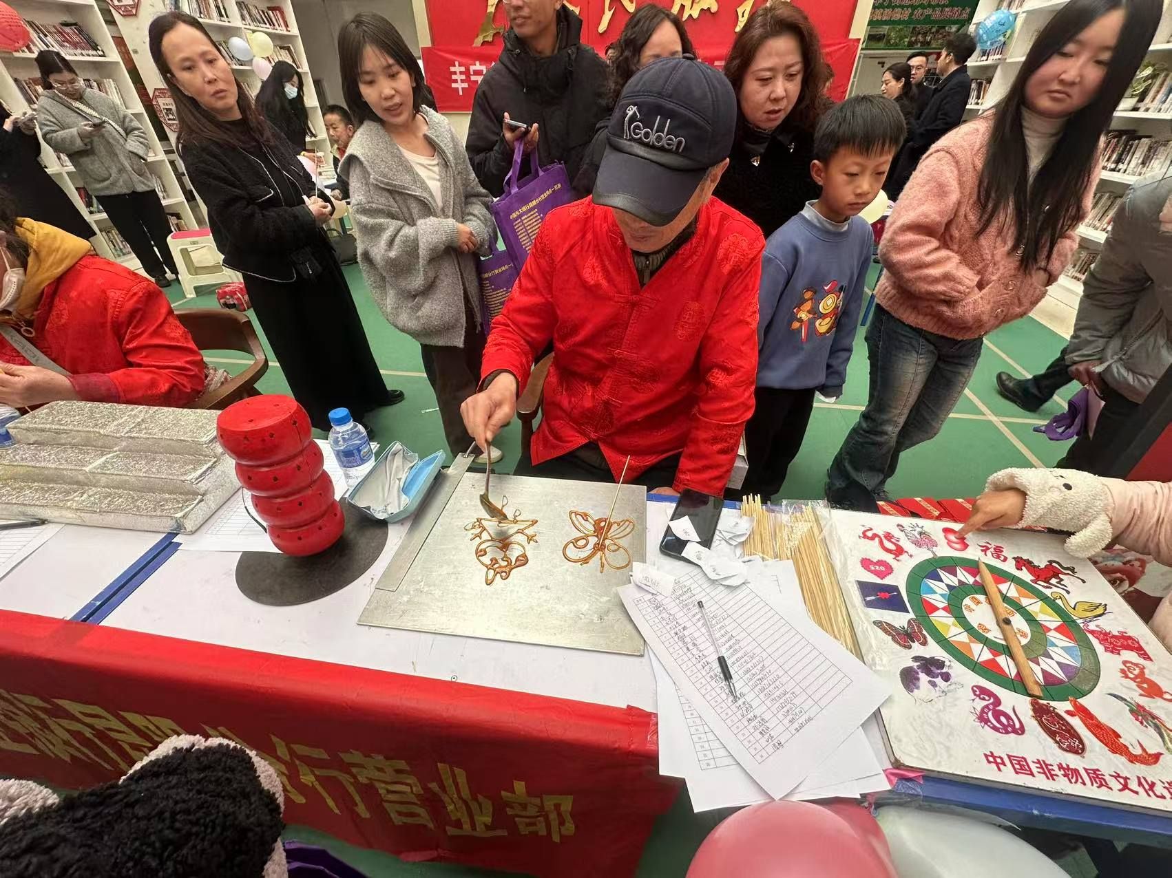 活动现场热闹非凡,灯谜区人头攒动,大家或低头沉思,或热烈讨论,争相竞猜灯谜,欢声笑语不断。来到糖画和捏面人的摊位前,大朋友和小朋友都竞相排起了长队。糖画师傅手法娴熟,不一会儿就制作出栩栩如生的糖人,引得孩子们连连惊叹;在捏面人摊位前,亲手体验捏制面人的乐趣,一个个可爱的小动物、卡通人物在手中诞生,一边体验传统非物质文化遗产的奇妙乐趣,一边拍照留念。