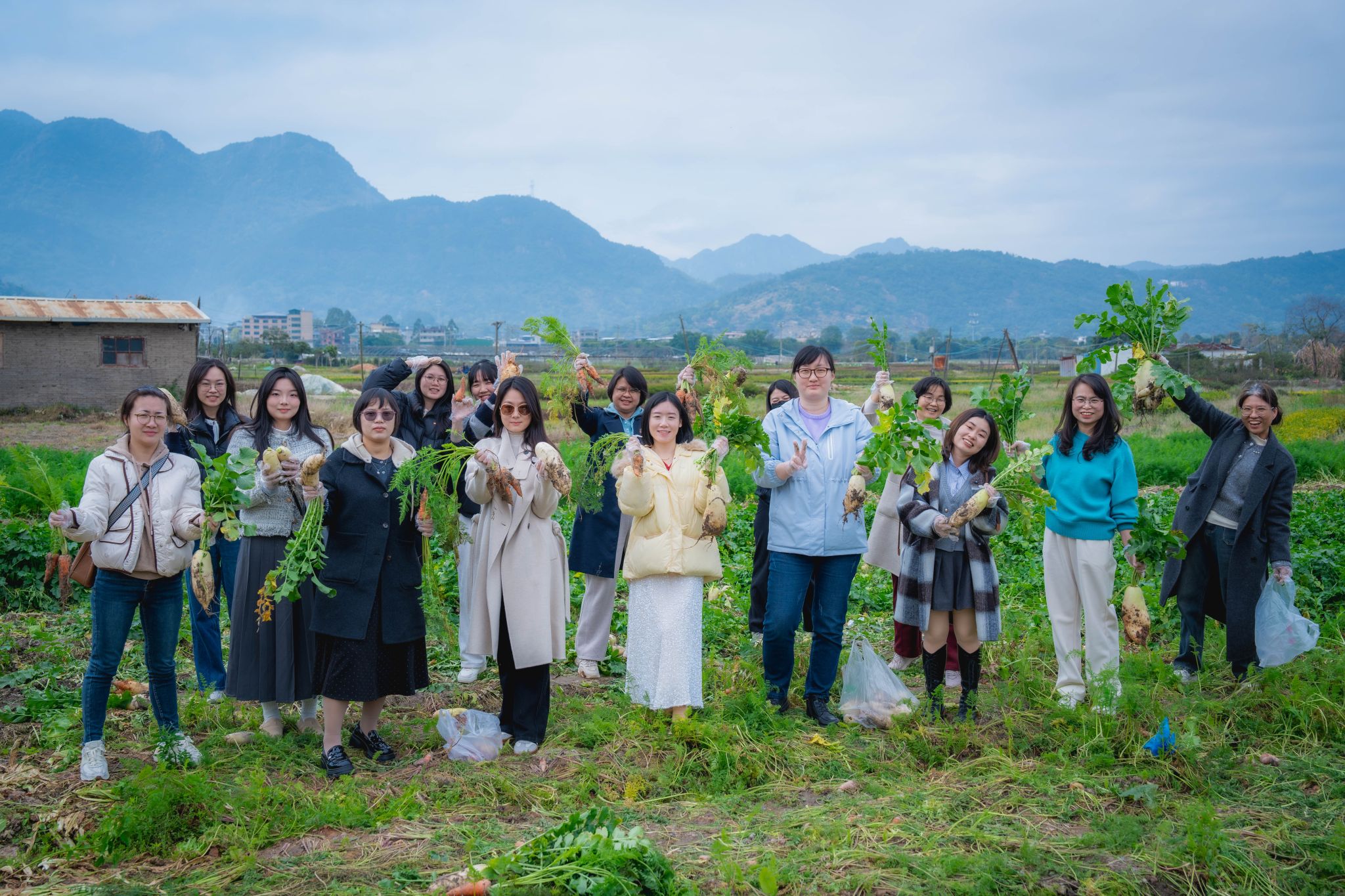 当春风轻拂过福州郊野,金黄的油菜花海随风摇曳,大家来到位于福州市南通镇的花田农场,远离熙熙攘攘的人群,在静谧精致的自然中充分感受春的气息。女职工们三三两两在田间地头采摘当季新鲜的蔬菜,体验趣味横生的农家乐文化,在蓝天白云的映照下感受春天绿荫、鲜花的阵阵芬芳。一起体验了采摘蔬果的野趣后,大家还兴致勃勃地将现挖带泥巴的萝卜蔬菜洗净,在农场老师的指导下制成了鲜香四溢的萝卜糕,共同分享。随后,大家三五成群的或在油菜花海中流连忘返,或围炉煮茶,在青烟袅袅中细嗅茶香唠家常。
