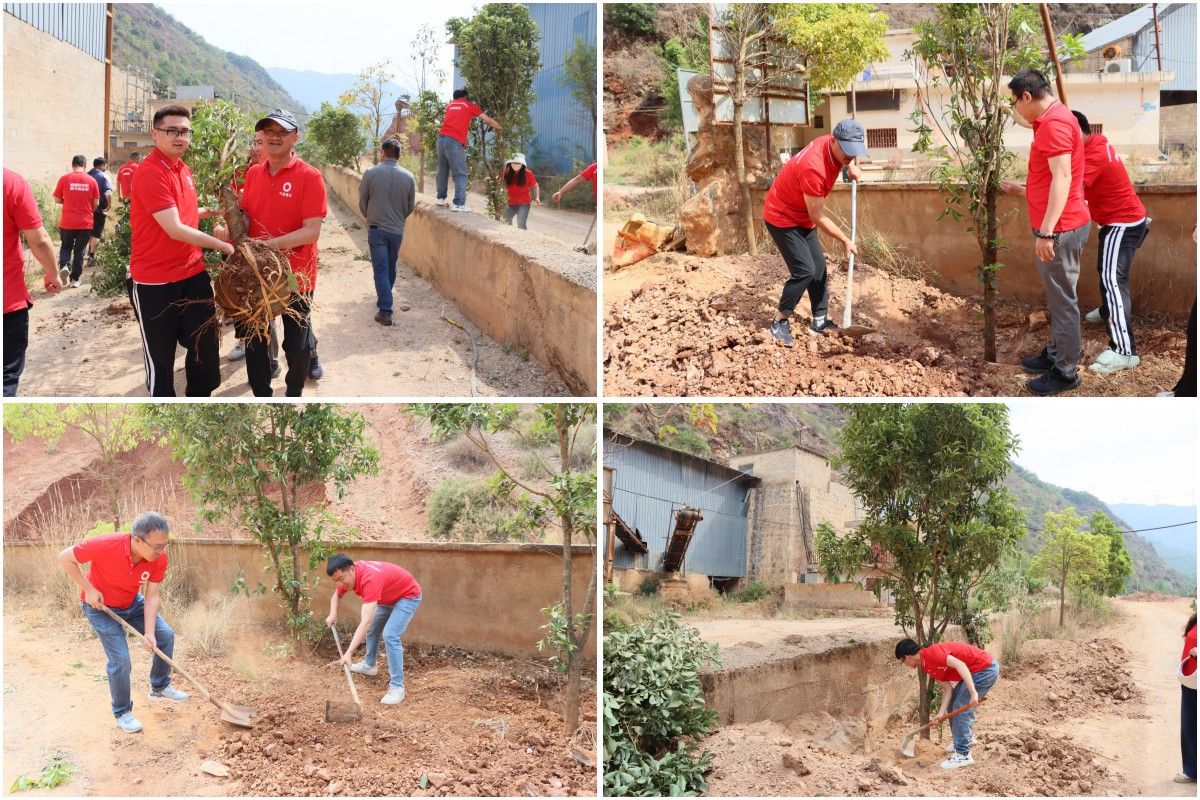 春风催新绿 植树正当时。禄劝拉法箐矿山植树活动现场,呈现出一派热火朝天的劳动景象。大家热情高涨、干劲十足,6人一组默契配合地开展植树工作。有的挥锹铲土,有的扶苗培土,各个环节衔接有序、一丝不苟。在大家的共同努力下,一排排新树苗在春风中昂然挺立,为矿山披上了一层新绿,为春日增添了一份生机。
