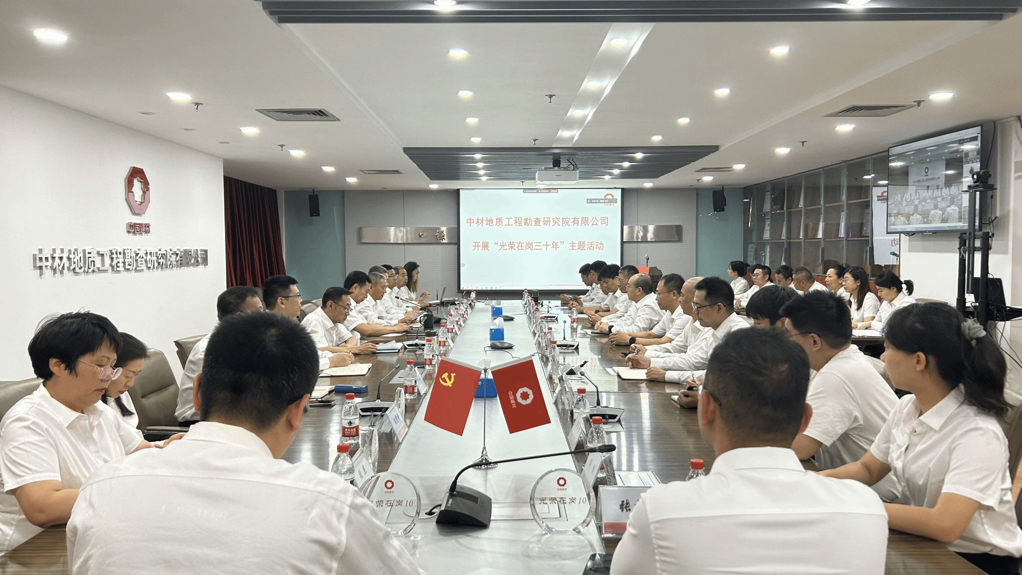6月19日,地勘院2025年“光荣在岗三十年”座谈会隆重举行。院党委委员、班子成员与数十位将宝贵年华镌刻在地勘院不同里程上的职工代表齐聚一堂,共同回首奋斗足迹,凝聚奋进力量。会议由党委委员、副总经理、工会主席张政主持。