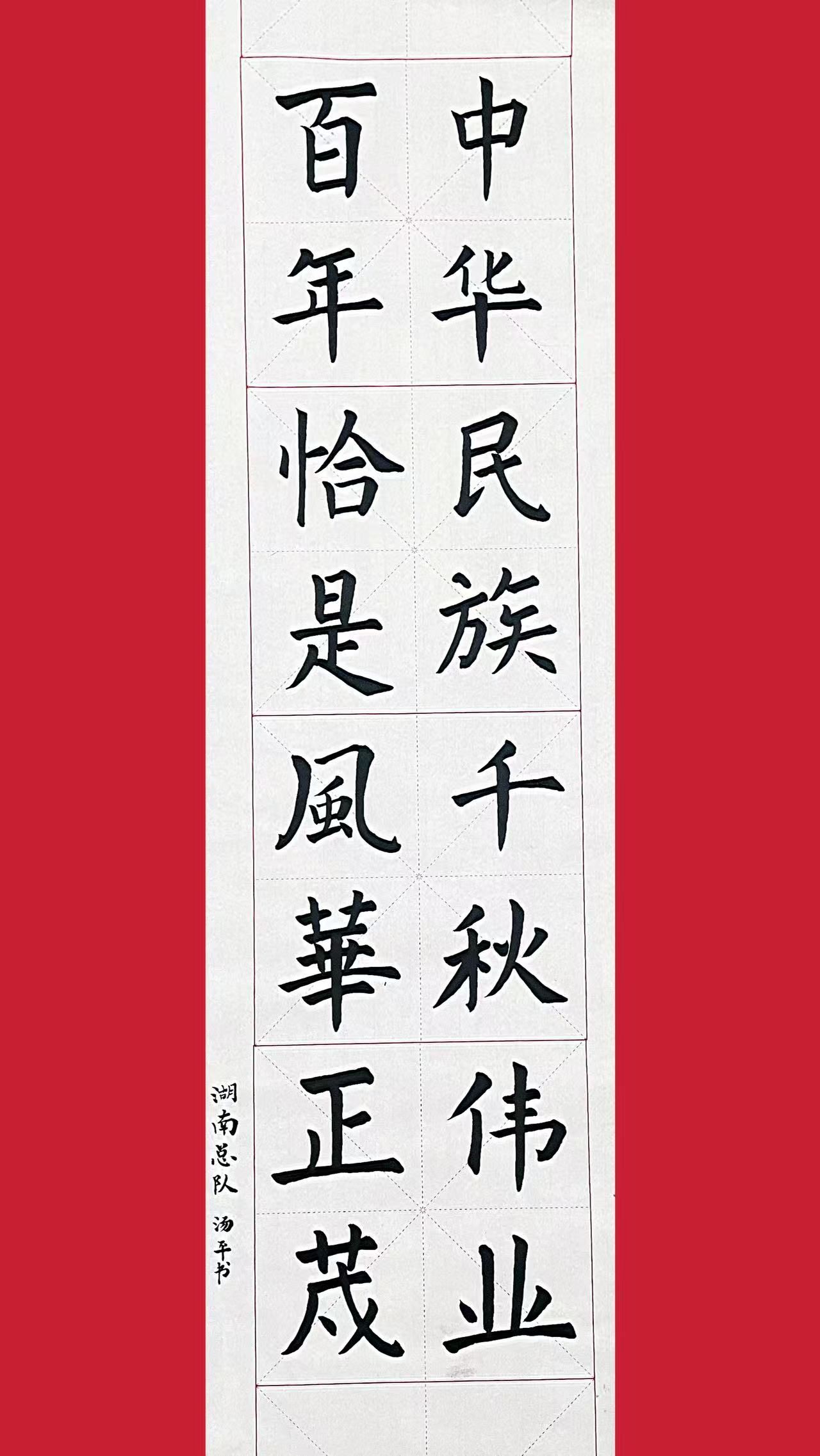 总队职工以书法、诗歌等各类文化创作形式为祖国庆生:书法爱好者挥毫泼墨,“国泰民安”“盛世华章” 等苍劲有力的字迹跃然纸上,一笔一划间饱含对祖国繁荣昌盛的美好祝愿;诗歌创作者写了一幅幅原创作品,《行香子·国庆》、《地质礼赞——贺新中国七十六华诞》等诗篇,用真挚的语言讲述祖国发展成就,抒发扎根岗位、报效祖国的壮志豪情。