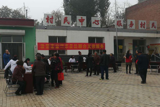 作为河北总队的定点扶贫村——下三土门村,是保定市唐县一个深度贫困村,近年来随着老龄人口逐年增加,因病致贫的群众很多。子女外出打工老人看病无人陪同,同时到城市就医交通不便、看病手续繁琐、看病排队难困扰着他们。河北总队驻下三土门村精准扶贫工作队了解情况后,积极联系保定市第一中医院为本村村民开展义诊活动。