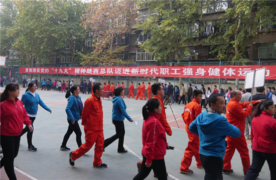 为深入贯彻落实党的十九大精神,让总队广大职工通过强身健体,以良好的精神状态和饱满的奋斗激情投入到工作和生活中,拥有更多的获得感和幸福感,陕西总队自11月6日起,在全体在职和离退休职工中开展了职工强身健体运动。每天上午7点半和下午5点整,运动场上都会准时响起一首首歌颂党歌颂祖国的雄壮乐曲,百余名在职和离退休职工们伴随着催人奋进的歌声,围绕着运动场迈着有力的步伐健步前行,既锻炼了身体,又陶冶了情操。除健步走外,本次职工健身运动还设有定点投篮、羽毛球、踢毽子、跳绳、呼啦圈、慢骑自行车、滚轮胎、象棋等个人项目二十余项,得到了广大在职和