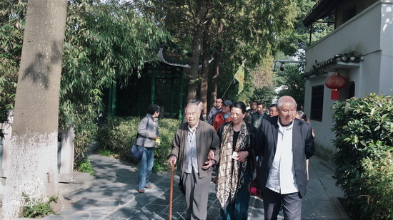 老人全程步行游览古镇