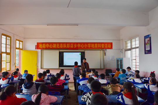 11月3日,湖北省大悟县彭店乡中心小学的50余名学生迎来了一堂别开生面的“地质学”公开课。当天,湖北总队“湖北省大别山西段石墨矿资源调查评价”项目组赴该校举行了以《我们的地球》为主题的地质科普公益宣教活动。总队工会副主席邬涛也参加了此次活动。