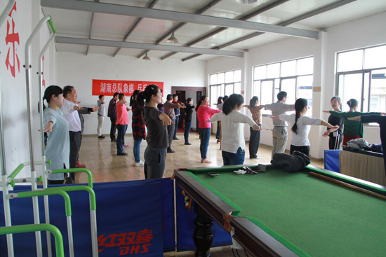 大家在专业老师的指导下舒展身姿,活动筋骨,并及时纠正不规范的动作,互动环节中积极配合,在欢快轻松的气氛中认真学习,为紧张忙碌的工作增添一份快乐的气息。
