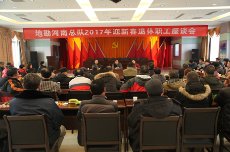 在新春佳节即将来临之际,2017年元月16日下午,河南总队在羊山基地五楼会议室召开了“地勘河南总队2017年迎新春退休职工座谈会”。来自总队的70余名离退休职工与总队领导和有关科室负责人聚集一堂,共话总队发展,喜迎新春佳节。会议由总队党委书记张永珠主持,总队长吴汉志、纪委书记张绪忠参会。