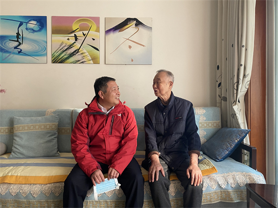 在原地勘中心领导孙长顺同志家中,刘海泉转达了地勘中心党委书记、主任吴岩的关怀与祝福。刘海泉介绍了地勘中心年度工作会及山东总队发展情况,关心了孙长顺同志的身体健康,叮嘱其要保重身体,并希望孙长顺同志能够继续关注地勘中心及山东总队的发展。