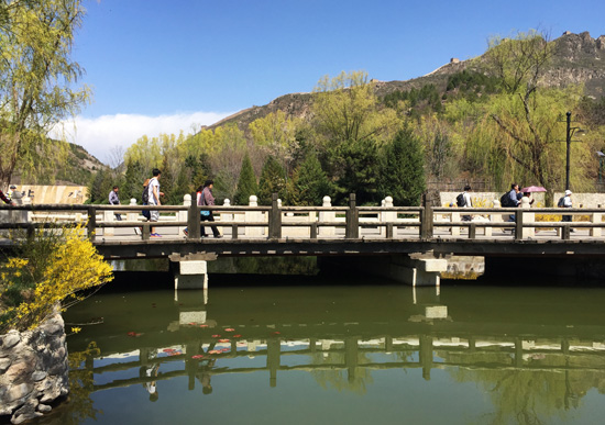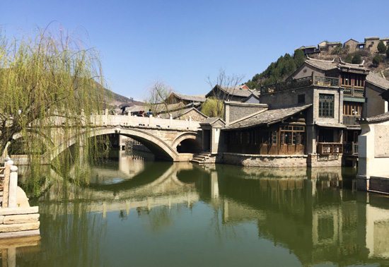 经过两个多小时的车程,我们来到了位于北京市密云区的古北水镇。这里背靠中国最美、最险的司马台长城,坐拥鸳鸯湖水库,是京郊罕见的山水城结合的自然古村落,被誉为北方“乌镇”。整个景区占地面积9平方公里,包括古北水镇和司马台长城两个游览区,其中古北水镇拥有43万平方米精美的明清及民国风格的山地四合院建筑。漫步于有着千年历史的古北水镇,古朴、典雅、风景如画。鳞次栉比的房屋,青石板的老街,悠长的胡同,无不展现了北方民国时期的古镇风貌。水镇内河道密布,古老的汤河支流萦绕其间,古建、民宅依水而建,在清新空气、蓝天白云、绿水波涛、参天白杨的掩映之下,宛如一片鲜为人知的世外桃源。