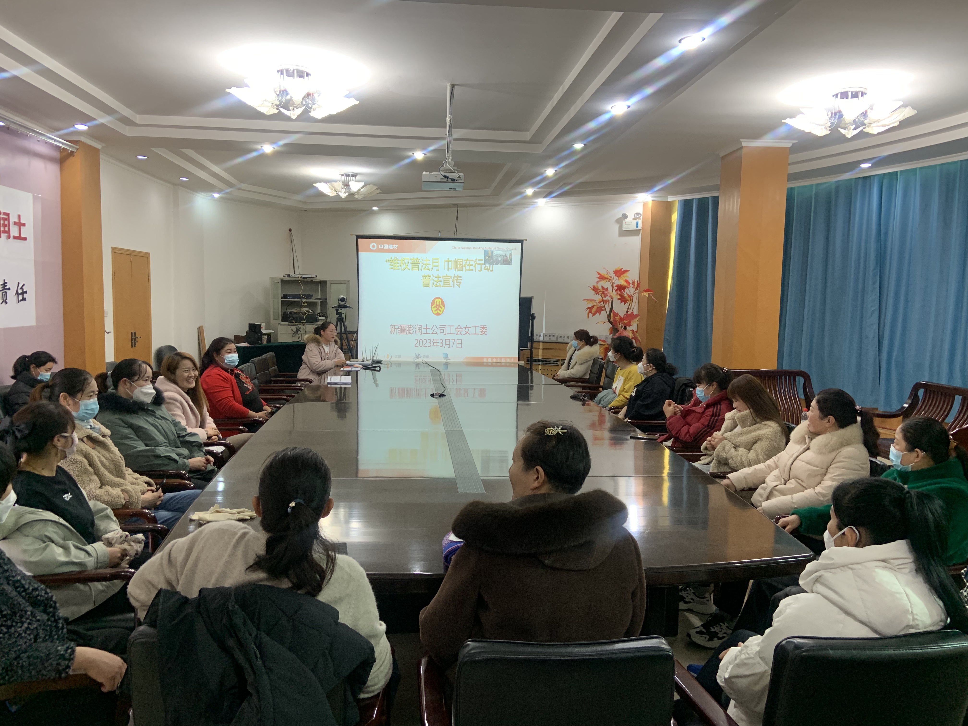 为深入学习宣传贯彻党的二十大精神、法治思想,宣传贯彻新修订的《中华人民共和国妇女权益保障法》,大力营造尊法学法守法用法的良好氛围,公司邀请184团司法所干警为全体女职工开展“维权普法月 巾帼在行动”法律讲座宣传活动。
