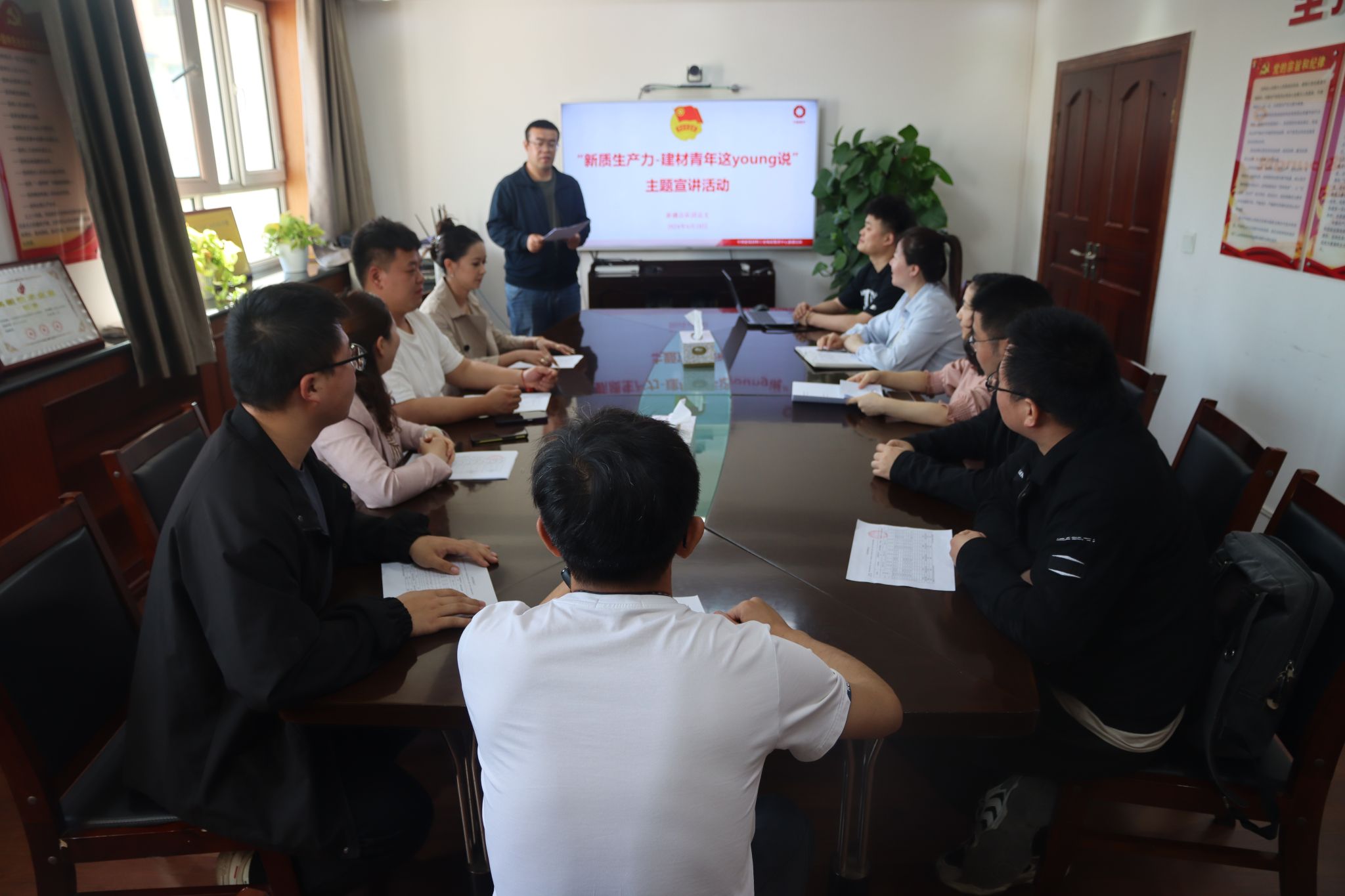 根据集团及地勘中心团委有关部署和要求,为深入实施新时代建材青年岗位建功行动,发挥榜样引领作用,激励广大团员青年立足岗位勇挑重担、冲锋在前。4月19日,新疆总队团总支组织总队团员青年开展“新质生产力-建材青年这young说”主题宣讲活动。总队团员青年共计11人参加,活动由团总支书记张秋燕主持。