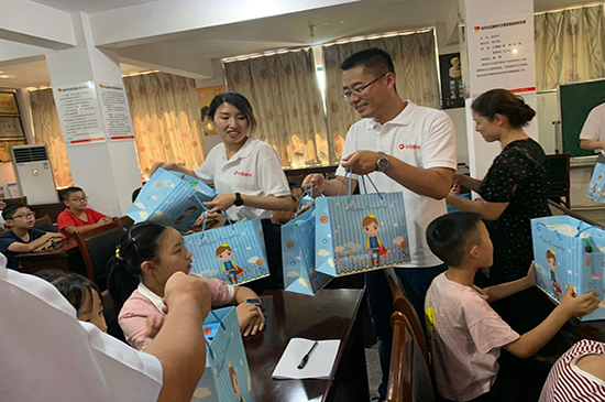 教学活动开始前,地勘中心志愿者代表集团团委向学生捐赠学习用品。