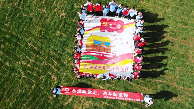 在“共筑宏图”活动中,队员们或手持画笔在白色画布上飞舞,或调和颜料寻找自己心中的那一抹色彩,好不热闹……在大家的共同努力下,圆满完成了以“永远跟党走 奋斗新征程”为主题的巨画。