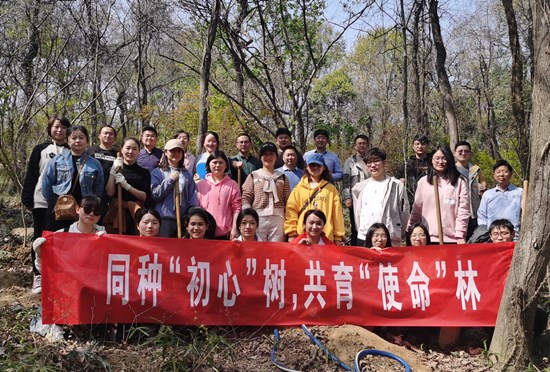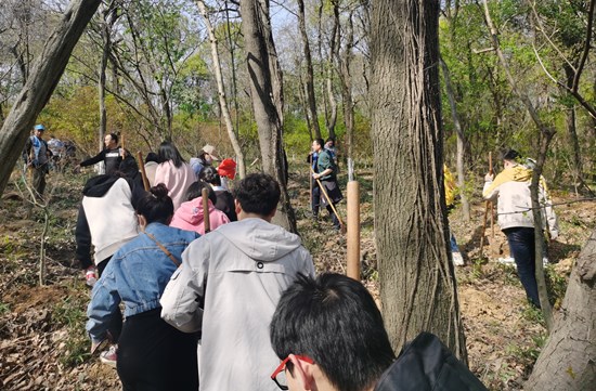 活动地点在南京市民义务植树基地——栖霞山风景区。景区内花团锦簇,绿树成林,芳草茵茵;大家徒步攀登,互相加油,一鼓作气。在40分钟后,30余名团员、青年全员到达了植树地点。