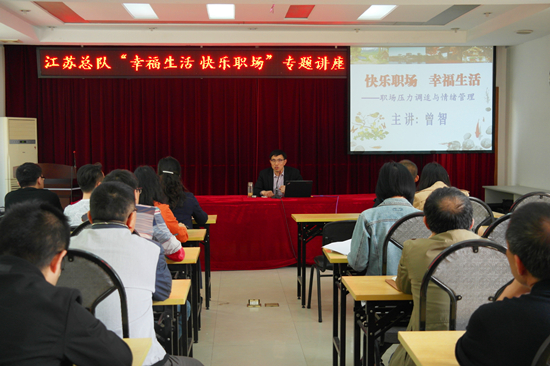 为倡导职工的健康理念、营造健康有益的工作生活环境,近日,江苏总队举办了“幸福生活,快乐职场-职场压力与情绪管理”专题讲座。总队40多名职工参加了培训。