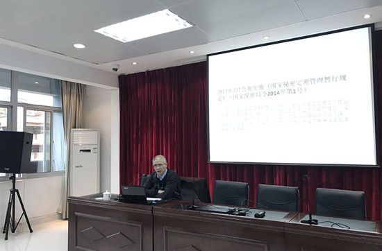 总队特别邀请福建省地质资料馆馆长贾学强,从国家定密法规简介及有关地质资料定密工作和新时期地质资料的汇交与服务两个方面,为职工们讲授地质工作中资料保密的相关知识和注意事项。总队安全科专职安全员郭勇,围绕事故隐患的定义、分类、演变过程、产生原因等方面,对职工们开展了安全隐患排查方面的专业知识培训。在此基础上,总队长刘荣生向全体职工传达了中建材集团2019年安全生产工作会议精神,强调安全生产责任重于泰山,新的一年,要坚持以习近平新时代中国特色社会主义思想为指导,坚持生命至上,树牢安全发展理念,以防范化解安全风险、坚决遏制事故为重点,进一步完善应急应对措施和决策、指挥机制,全面排查并消除安全隐患。