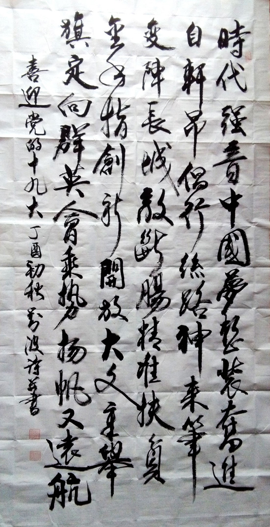 神州奔梦长征路。仰北斗、军魂固。笑见飞天闲漫步,月宫迎客,龙宫欢舞,航母深蓝旅。东风丝路飞花雨。高铁风驰亚欧去。智慧高端中国铸。 神威神算,大鹏鸣翥。砥砺催金鼓。