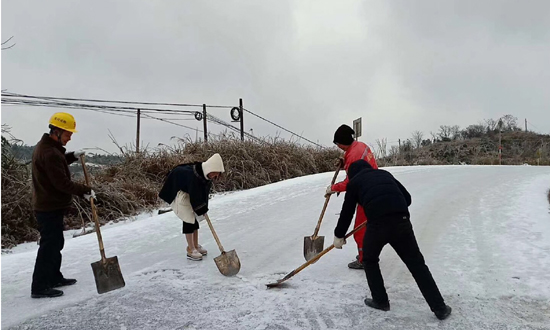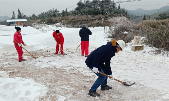 为了保证贵州三都西南水泥有限公司生产,元旦早上8点,项目经理杜洪武带领项目全体同志,顶风冒雪开始对矿石运输线开展除冰除雪工作。在同志们的齐心协力下,通过两天近14个小时的不懈努力,于2日下午四点圆满完成了积雪清扫工作,打通了矿石运输线,成功发出第一车矿石。