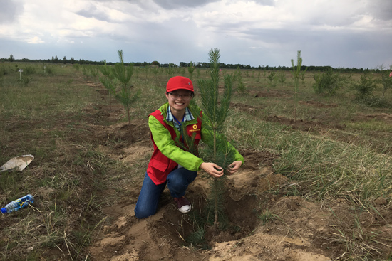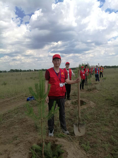 25日,志愿服务团一起奔赴另一个基地——河北省张北县馒头营乡绿化基地,在这里,所有队员种下了一棵与自己同名的樟子松,亲自动手挖土、栽苗、培土,队员们很用心在呵护自己的小树苗。
