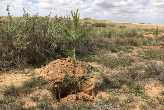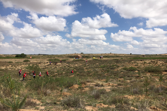 第一次到达基地的最真实感受为“震撼”!抬头望去,眼前是一片片绿色的汪洋,就在不远处却是大面积覆盖的茫茫沙地,让人明显感受到了基地内、外的巨大生态差距:栅栏外,黄沙弥漫寸草不生;另一边,生机勃勃草长莺飞。这一强烈的对比让志愿者们明白治沙护沙、合理放牧的重要意义。震撼之余便是十足的干劲,经过老志愿者简单示范后,大家拿起大铁锹、小铲子齐上阵,明分工。大半天功夫,志愿者们高效率地完成了240余棵樟子松的植树任务。