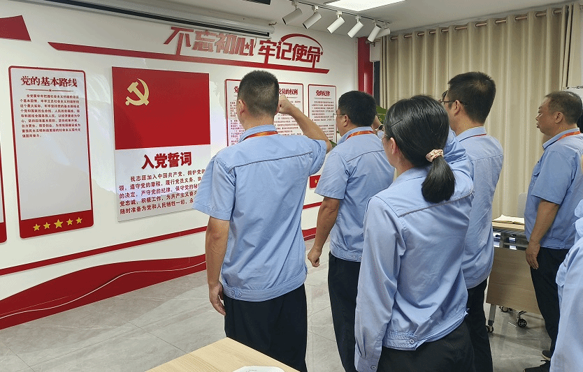 党支部书记张北平同志带领全体党员在党旗前重温了入党誓词。