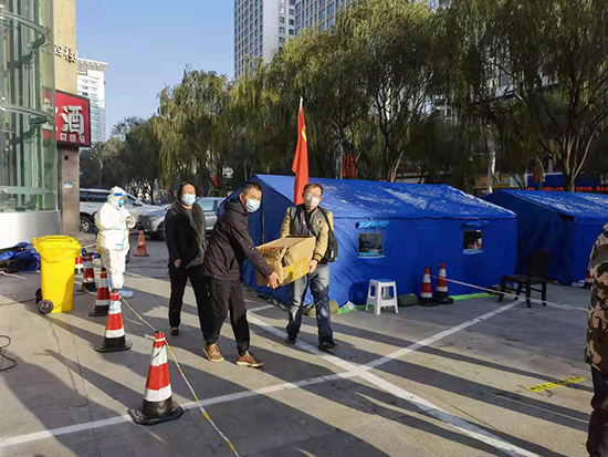10月28日以来,青海省西宁市突发疫情。在这场全民行动坚决打赢疫情歼灭战中,青海总队积极响应号召,对疫情防控工作再部署、再落实。11月的西宁,气温骤降、风雪交加,一线抗疫人员冒着严寒为市民进行全员核酸检测。总队守好自己的门,管好自己的人,同时,立即组织购买暖手宝和热水袋等保暖物资,送到所辖的西交通巷社区和通海路街道办事处一线人员手中,为严寒中坚守抗疫阵地的一线人员送去了温暖和关爱。