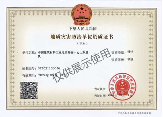 在申报过程中,经管部积极按照资质标准准备材料,更是在春节放假前后多次对材料进行修改、补充。4月25日,好消息传来,总队地质灾害治理工程设计资质乙级升甲级获得批准并予以公示。5月14日,总队顺利取得自然资源部颁发的地质灾害治理工程设计资质甲级证书。