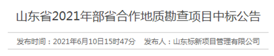 2021年5月19日,山东标新项目管理有限公司通过山东政府采购网发布《山东省2021年部省合作地质勘查项目公开招标公告》,2021年山东省部省合作地质勘查项目共58个标段。