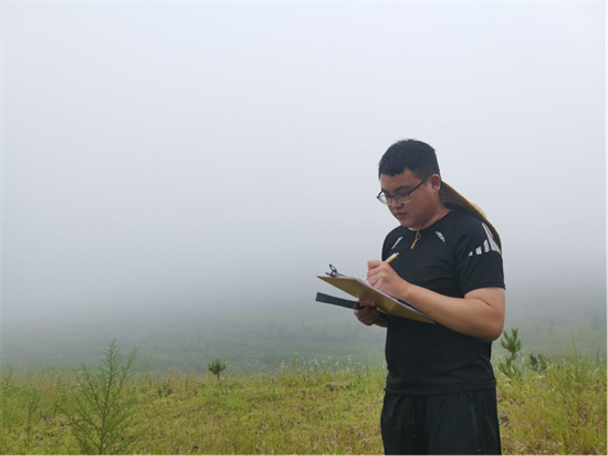 为了加快项目进度,野外调查人员常常伴着初升的太阳开始工作,太阳落下时才下山。身上的速干衣一次次的被汗水湿透,记录时额头汗水一次次滴落在笔下的记录本上。连日来,调查区雨水不断,山路又陡又滑,在保证安全的前提下,调查人员依然上山工作,鞋子、裤腿经常被草木上的水珠打湿,湿漉漉的鞋子和泥泞的山路无法阻挡队员们前进的脚步。晚上回到项目部,他们仍然整理资料至深夜。无论风雨,他们始终坚守在一线,默默坚持工作的背影,形成了一幅别样动人的风景。