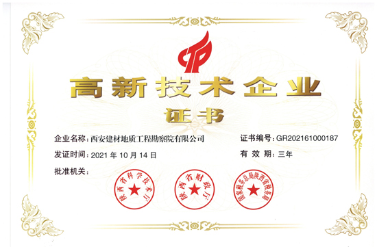 近期,国家高新技术企业认定管理工作网对外发布了《关于陕西省2021年第一批备案高新技术企业名单的公告》,陕西总队全资子公司西安建材地质工程勘察院有限公司(以下简称勘察院公司)凭借企业核心自主知识产权、科技成果转化能力、研发管理水平等方面的优势,正式被认定为国家高新技术企业。