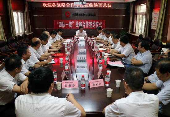 9月20日下午,“四队一院”战略合作协议签约仪式在陕西总队正式举行,陕西总队、宁夏总队、山西总队、山东总队、咸阳非矿院各单位的主要领导参加了仪式,签约仪式由陕西总队党委书记杨春泉同志主持。
