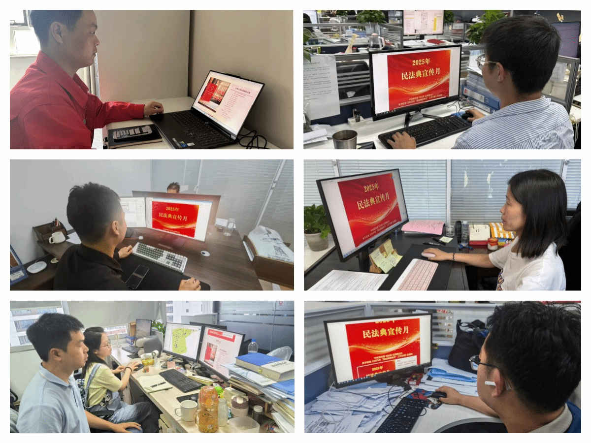 活动月期间,地勘院创新普法形式,打造“沉浸式”学习体验。通过地勘院官网、微信公众号推送《民法典与生活同行》等图文内容,进行线上平台“云普法”;地勘院所属企业设置民法典宣传展板,利用电子屏滚动播放普法视频,让法律条文“看得见、听得懂、用得上”,打造线下阵地“零距离”;组织各部门职工积极参与司法部官网“民法典宣传月”专题活动,通过学习“民法典全览”、“民法典进企业”、“媒体关注”等内容,深入立体地了解民法典宣传月活动。
