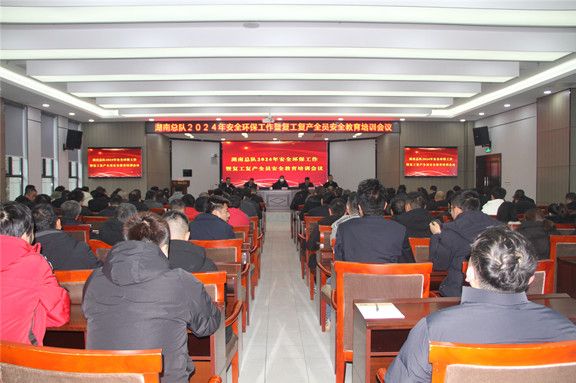 2月29日,湖南总队召开2024年安全环保工作暨复工复产全员安全教育培训会议,总队党政领导班子,各部门、产业、项目共130余人参加,会议由常务副总队长庄石云主持。