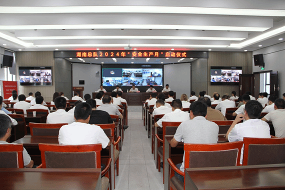 湖南总队(湖南非矿)领导班子成员、全体员工参加了启动仪式,并在“湖南总队2024年安全生产月”旗帜上签名。